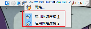 其中,3号网卡是nat网络,2号网卡是host-only网卡。一定要区分清楚接口名和实际网卡的对应关系。可以通过虚拟机窗口右下脚的网络图标,启停相关网卡,查看接口状态。因为右下角的网卡顺序和网卡配置页面的顺序是一致的(网络连接1对应host-only网卡)。