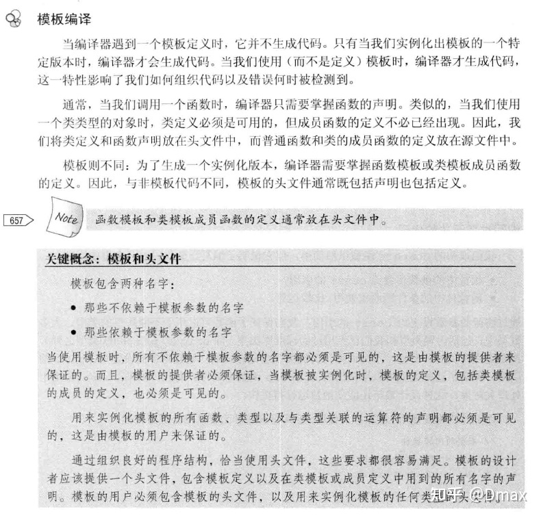 分离编译为什么不行:因为在编译实现模板的那个cpp文件时,如果该cpp文件中没有显示使用到模板的某个实例化版本,那么,编译器不会为模板的实现生成代码,它也不知道怎么生成。(因为模板参数不知道,你说其他文件中传了?抱歉,c++是一个文件一个文件编译,编一个丢一个的。你想的那些依赖关系都是交给链接器去做的,所以链接器找不到模板定义。)